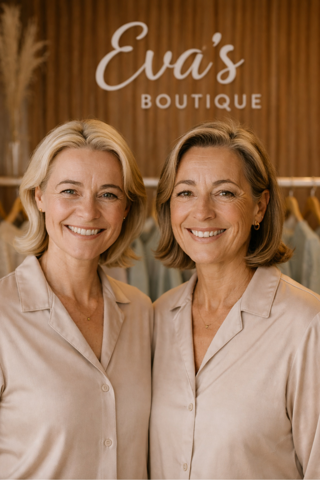 For over 26 years, we've poured our hearts into Eva's Boutique — creating more than just a store, but a place where elegance, comfort, and authenticity come together. Born from the bond between two sisters, Eva's has always been about timeless fashion and the women who wear it with grace.